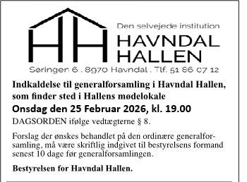 Generalforsamling i Havndal Hallen, den 25. februar 2026 kl. 19.00